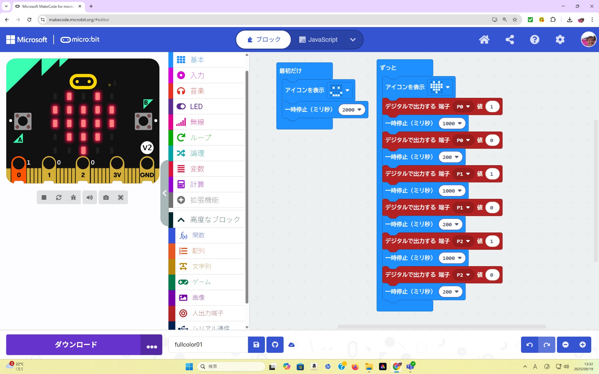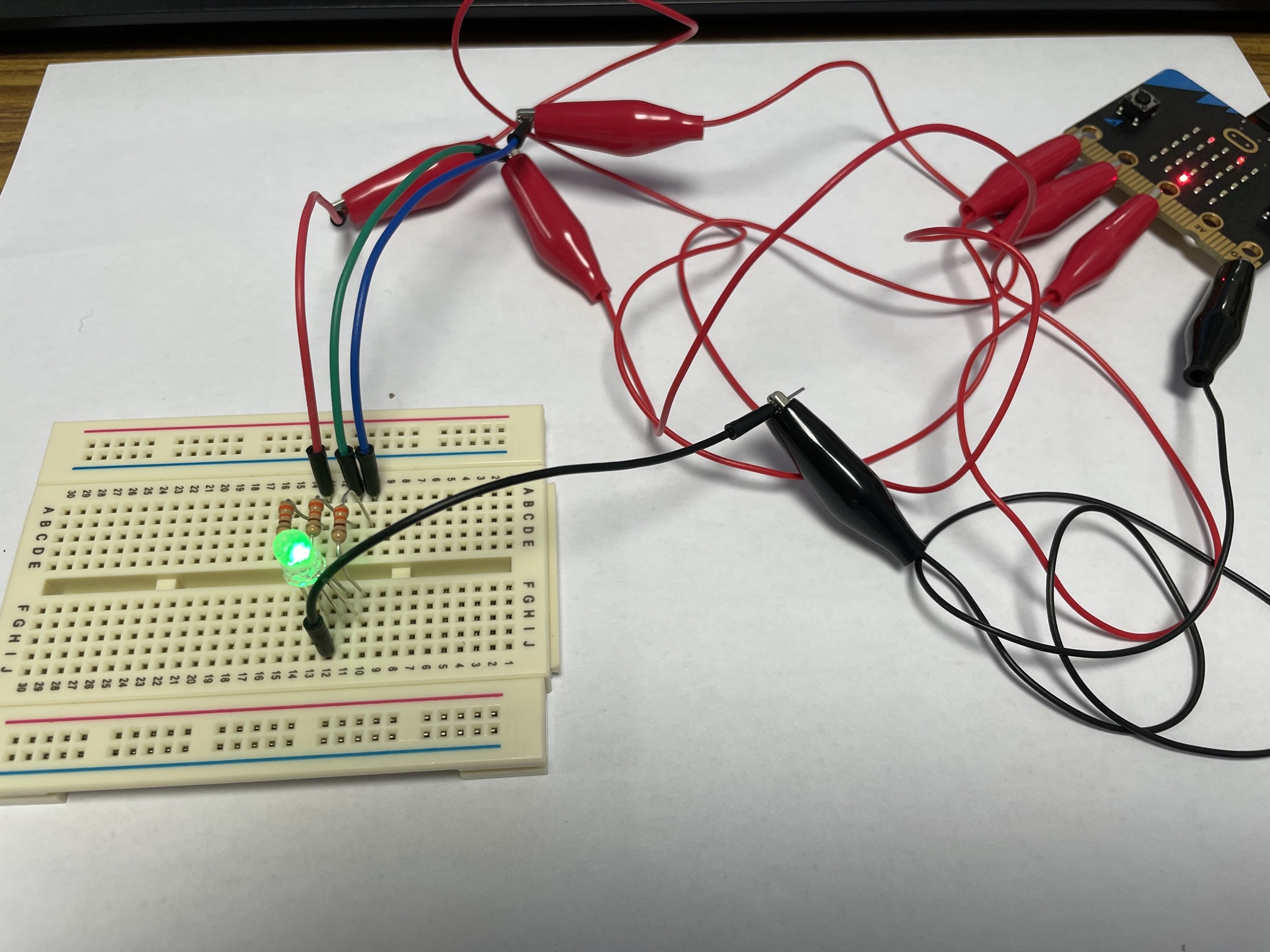 赤はP0、緑はP1、青はP2へ。黒はGND。
