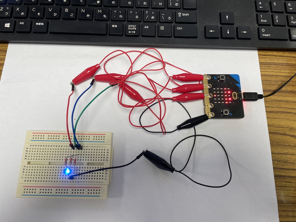 赤はP0、緑はP1、青はP2へ。黒はGND。