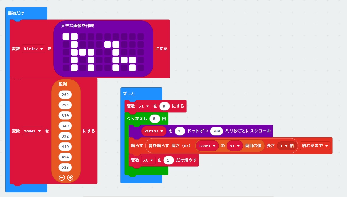 キリンの親子がスクロールする。子供のキリンが左端に来ると、音が鳴る。