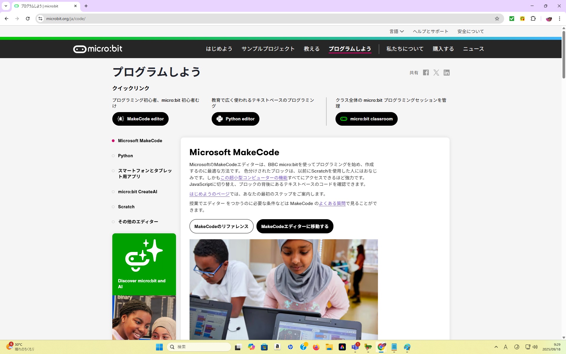 下記の様になる。プログラミングの画面は、Make Code, Python などがある。