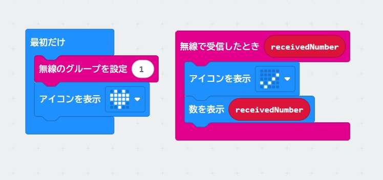 数値の受信プログラム。変数名は、receivedNumber