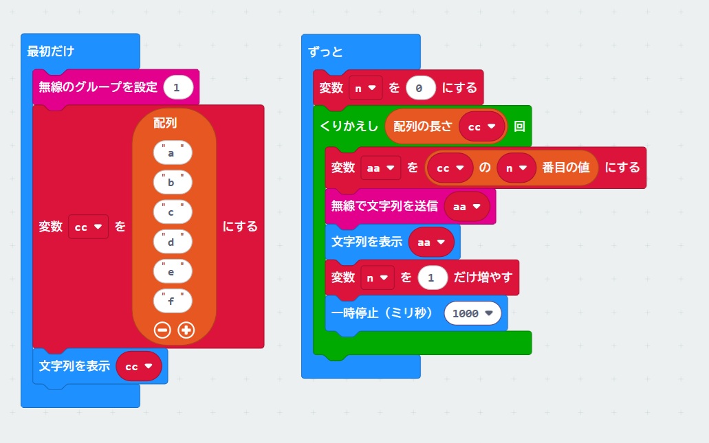 MakeCodeの送受信プログラム動作時。(動画23秒)