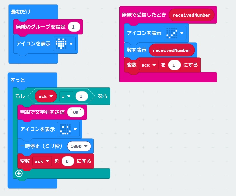 受信プログラム。受信完了(アクノリッジ)を返信する。