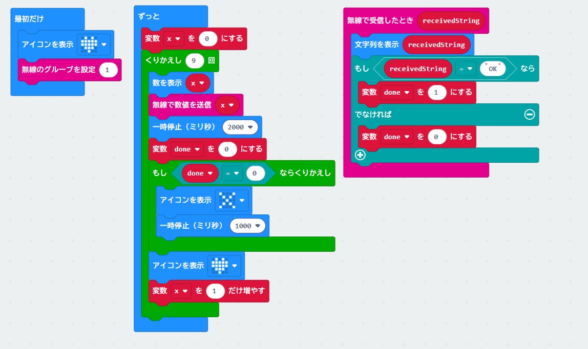 MakeCodeのプログラム動作時。交信中(動画61秒)