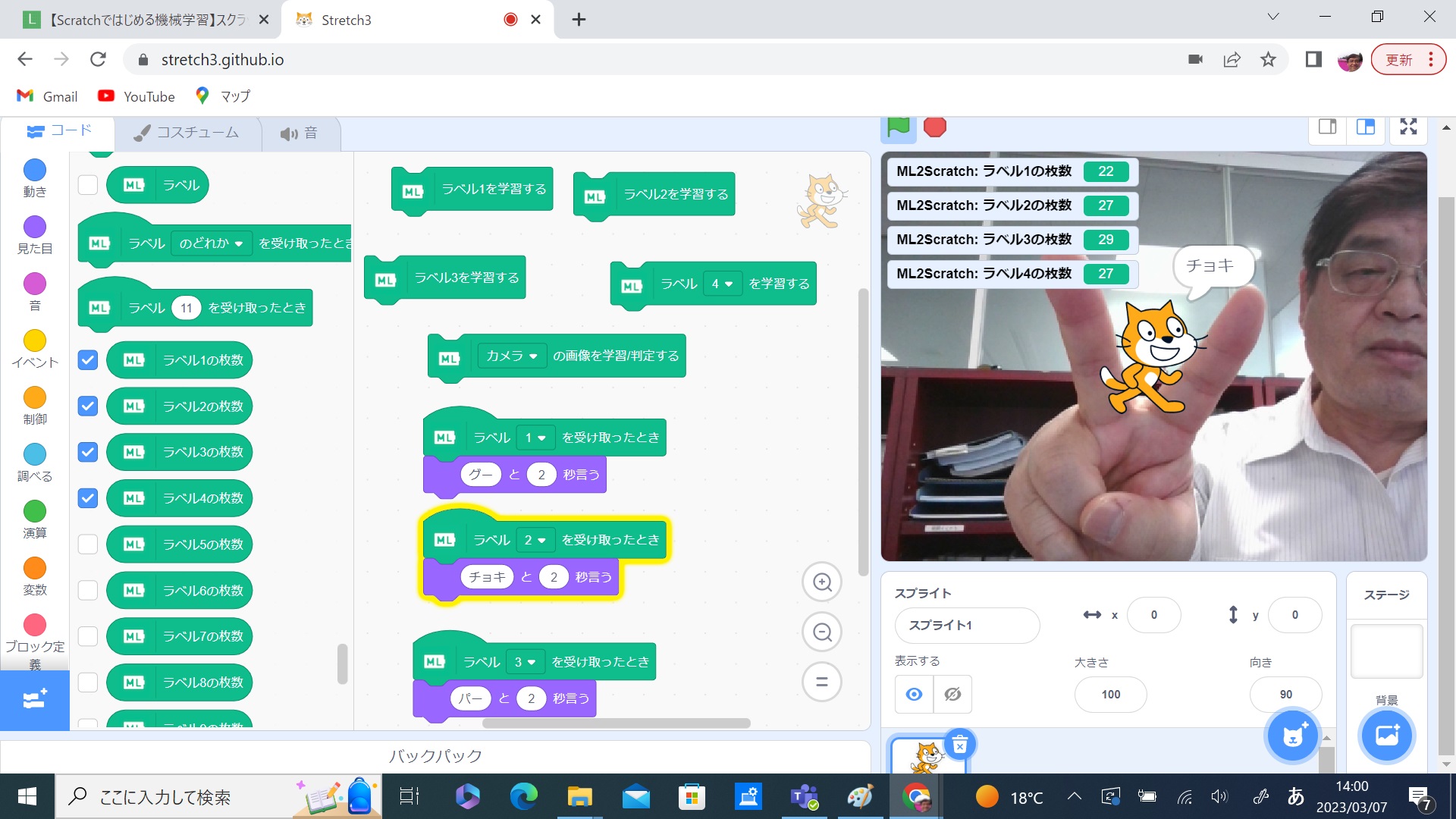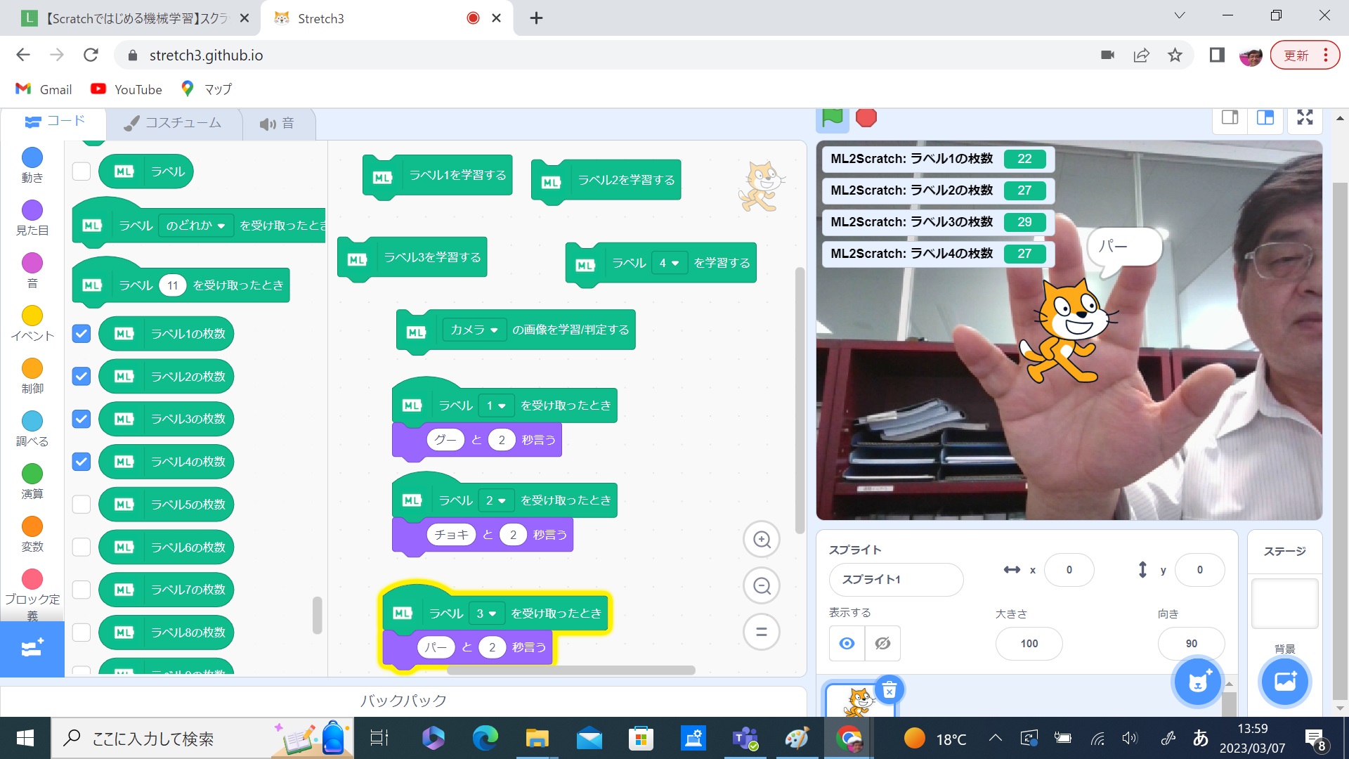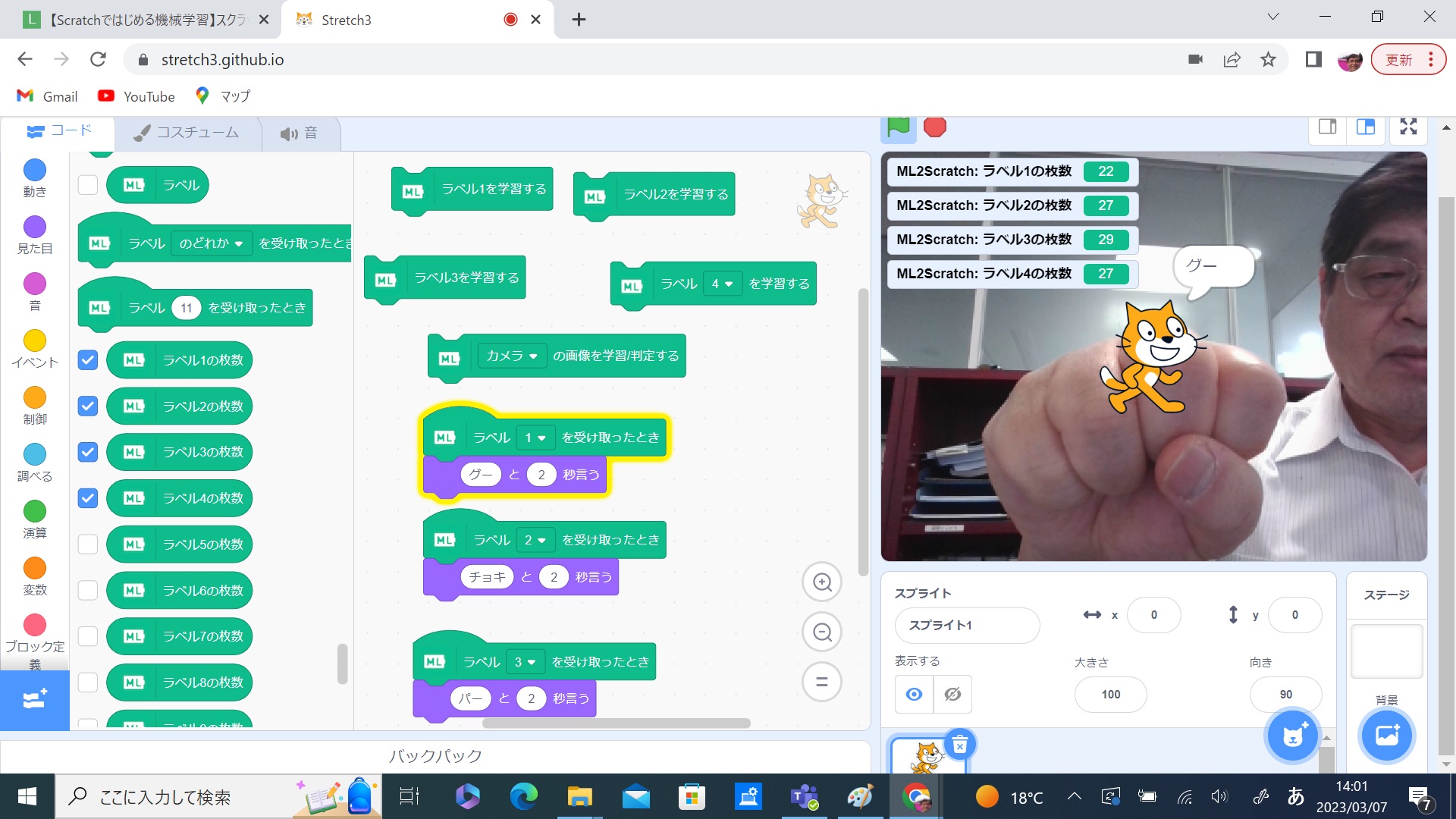 グー、チョキ、パーの写真を読み込ませて、トレーニング。