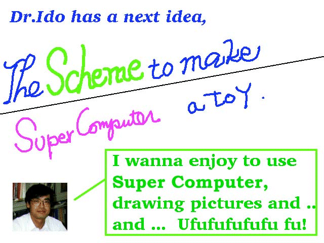 Dr. Ido has a dream ... [ Everyone, from children to adults, and to local people, is to use Super Computer as a toy.]