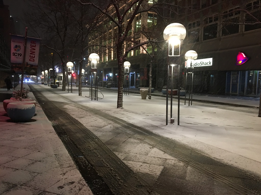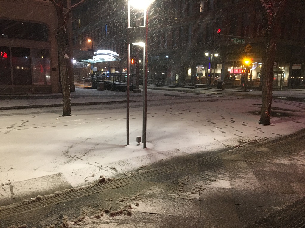 Snowing in the 16th Street early in the morning.