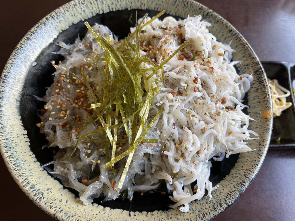 昼食。釜揚げシラスと生シラスの2色丼。