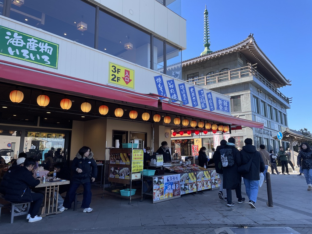 江島神社参道口。奥のラーメン屋で昼食に味噌ラーメンを食した。